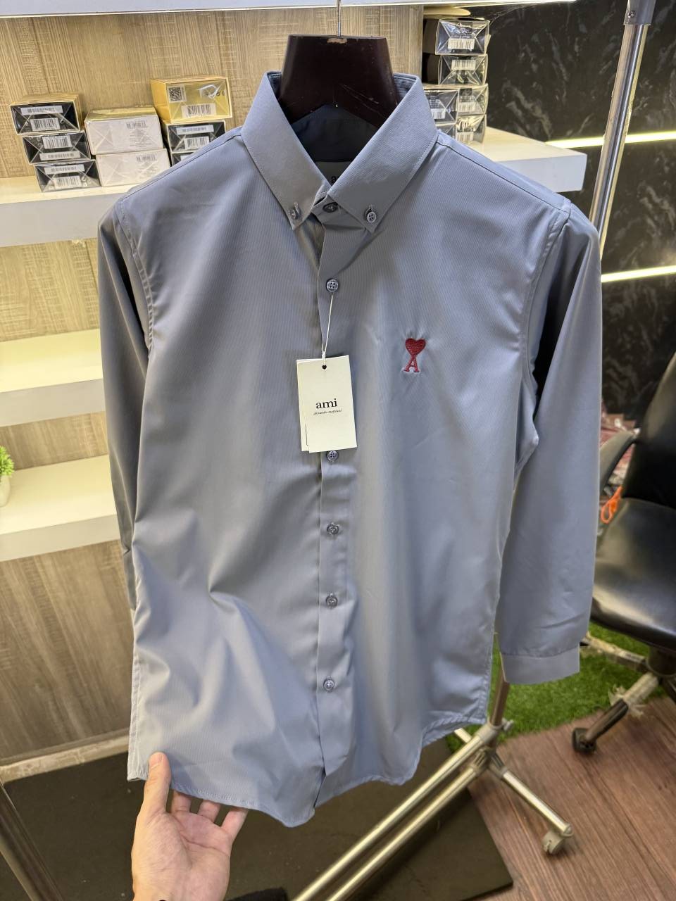 • Ami Paris Corduroy Premium Shirt (Grey)