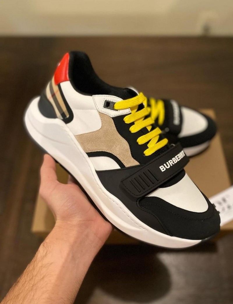 burber ry multicolor suede and fabric velcro low top sneakers