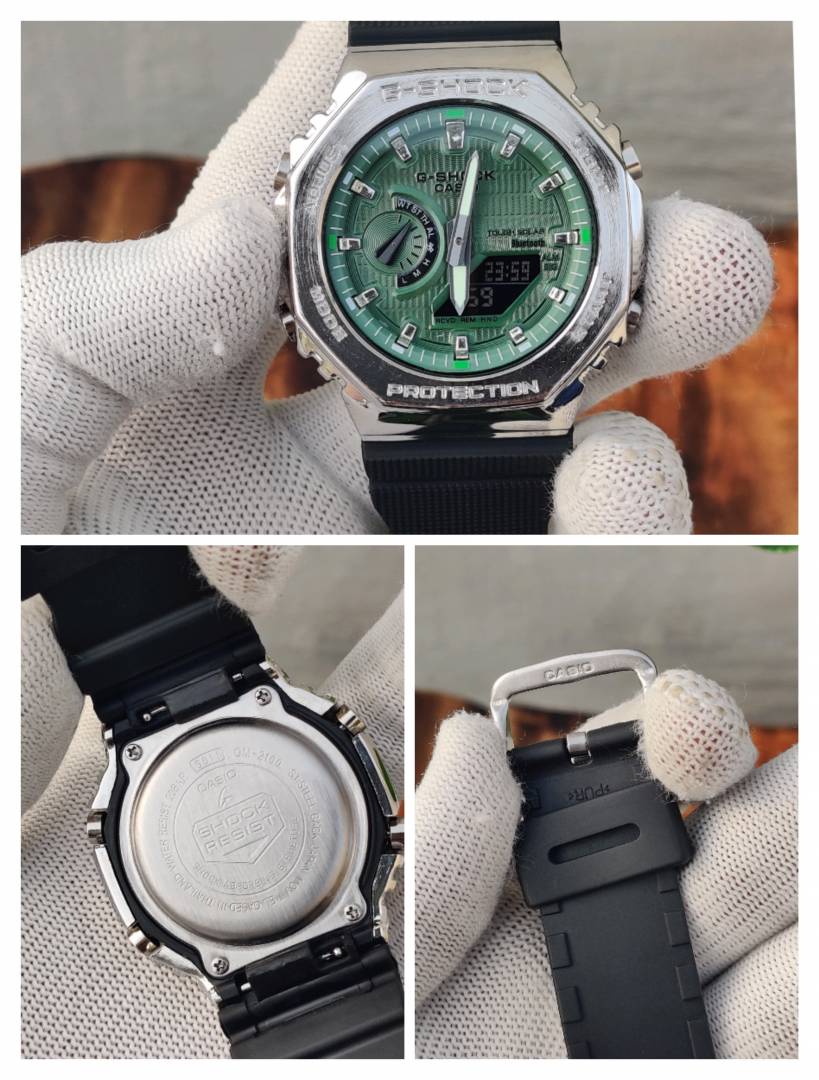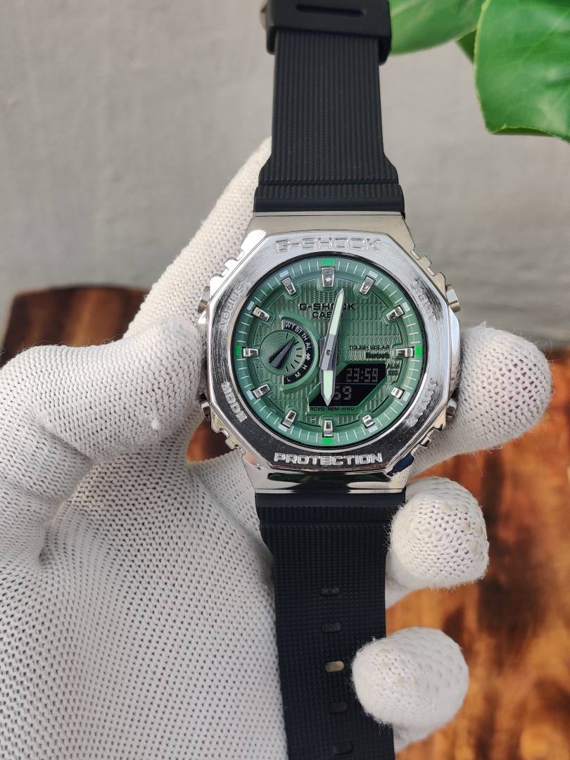 CASIO G-SHOCK 2100 METAL SILVER GREEN DIAL