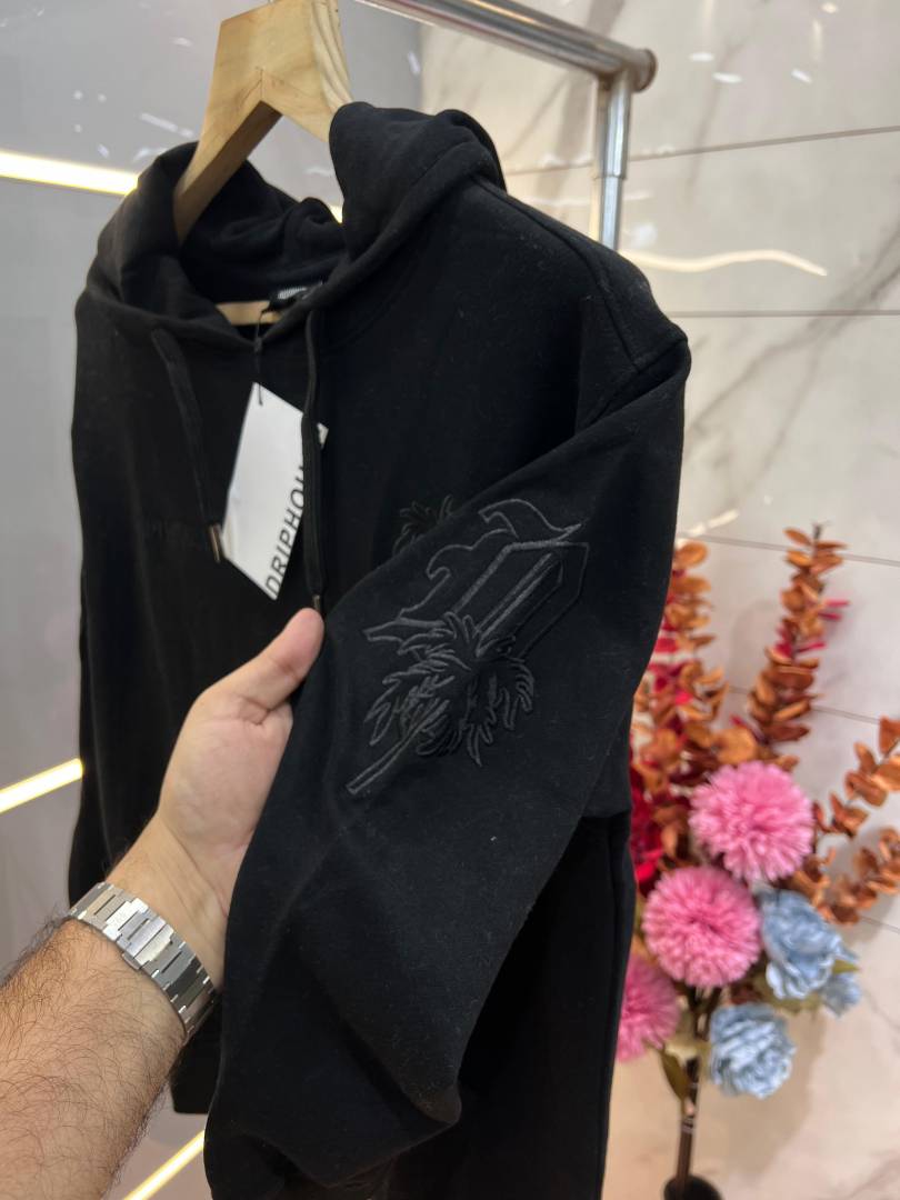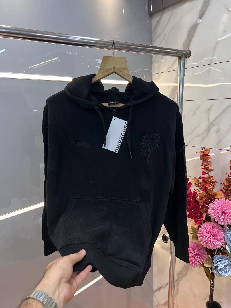 Drip House Black Imported Cotton Fleece Fabric Embroidered Logo Regular fit Hoodie 3087