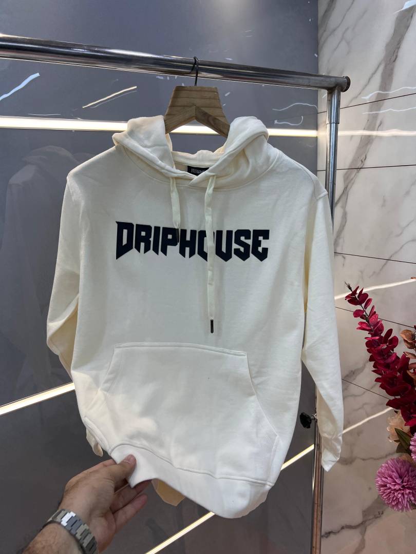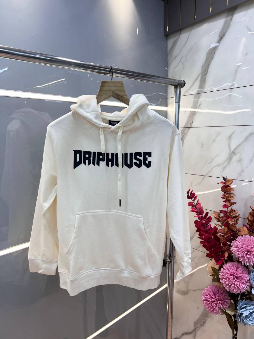Drip house Grey Imported Cotton Fleece Fabric Shoulder Strip Regular fit Hoodie 3085