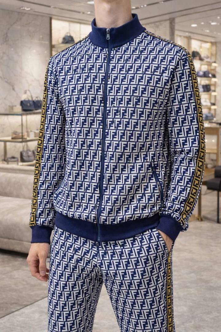 Fend i Imported Navy Monogram Printed Premium Track Suit F3296-NY