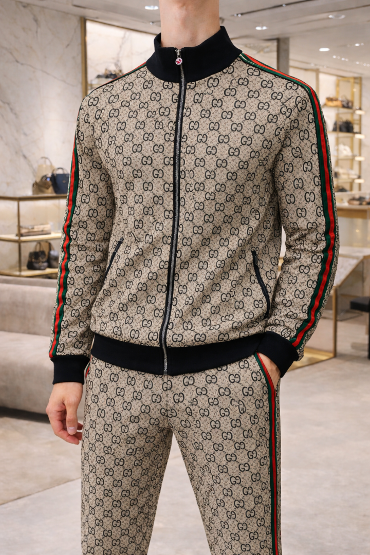Gucc i Imported Dark Brown Monogram Super Premium Track Suit With Brand Carry Bag F3149-DBR
