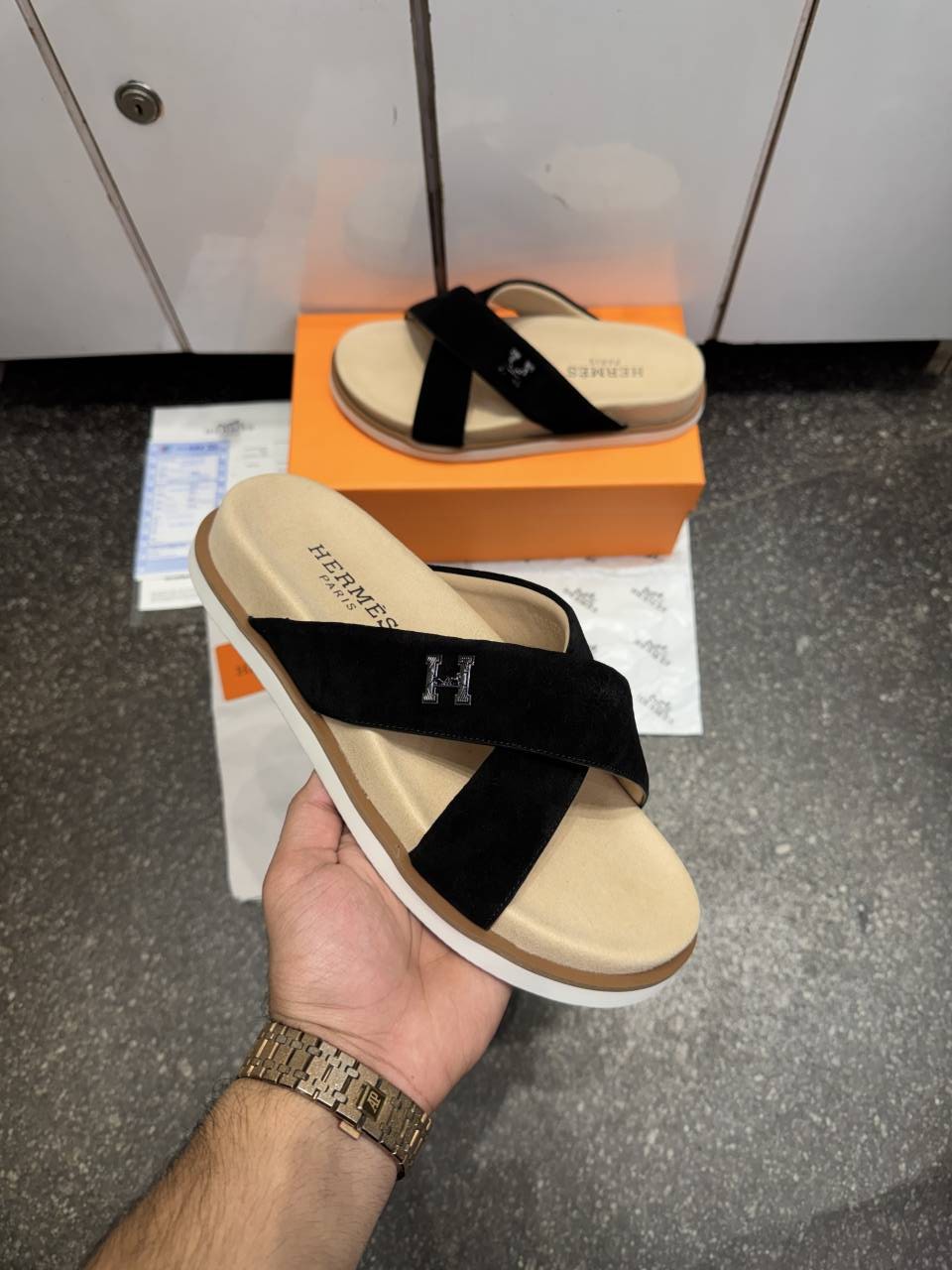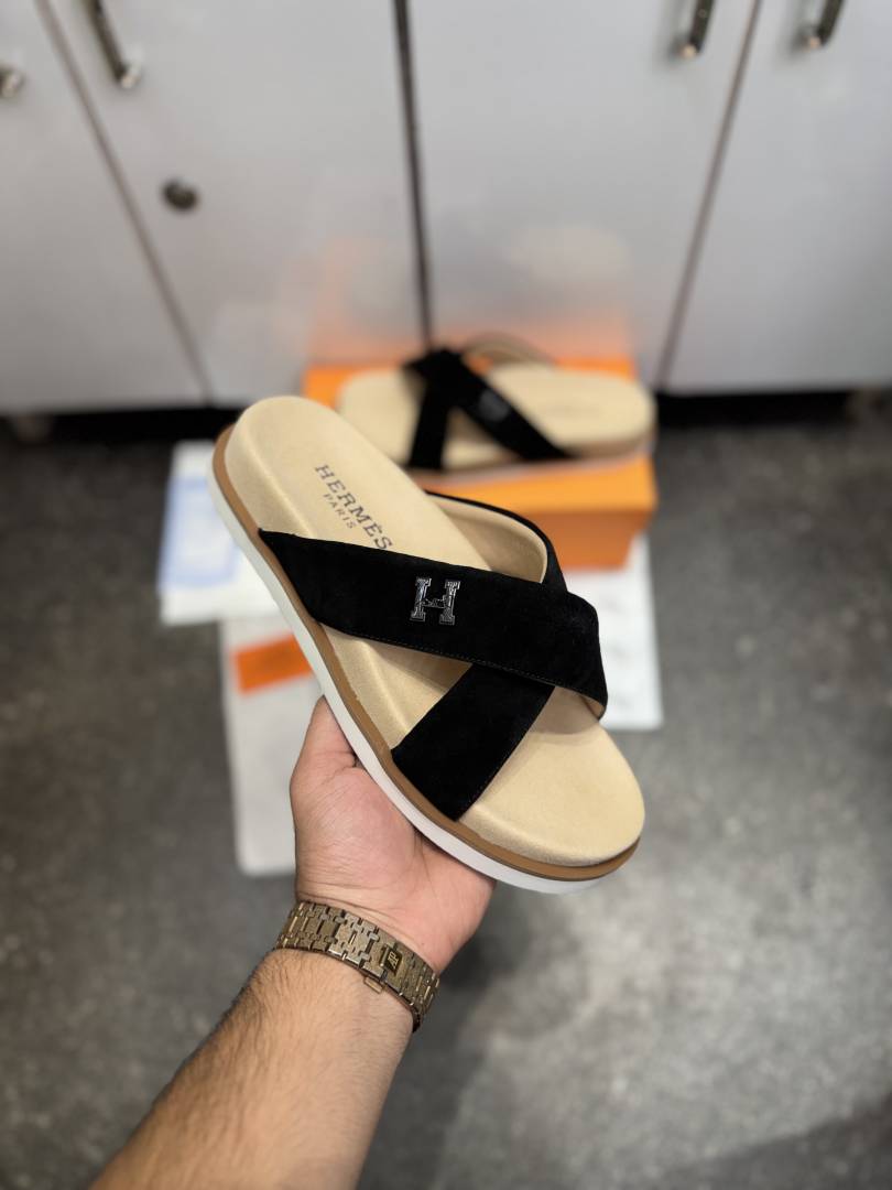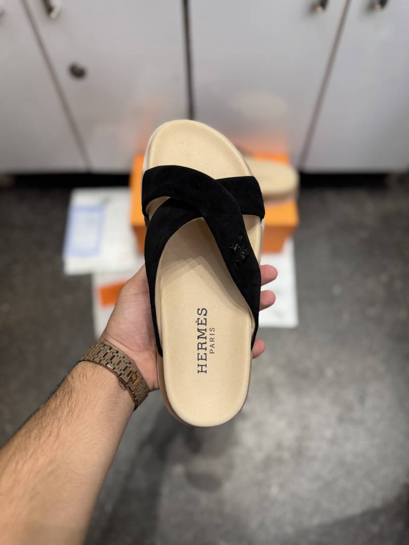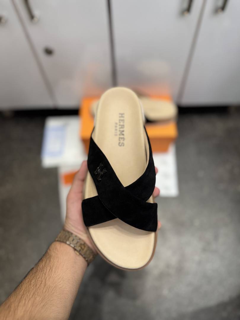 • HERME.S INFRA CROSS ITALIAN SLIDE BLACK SUEDE 02