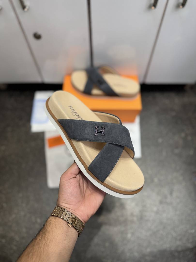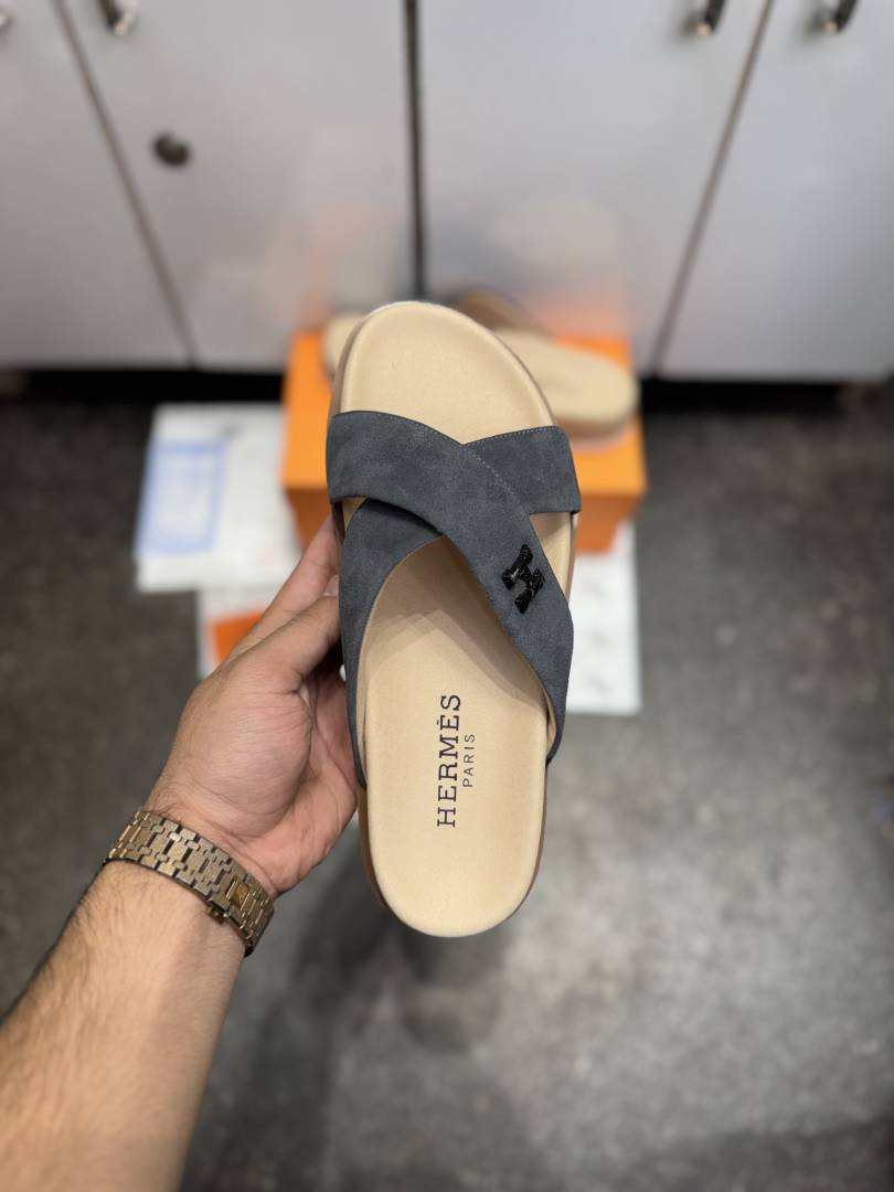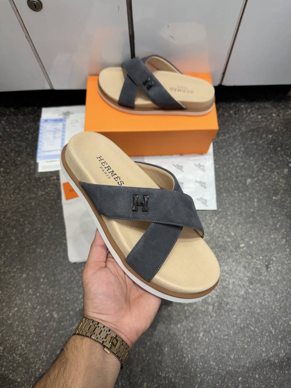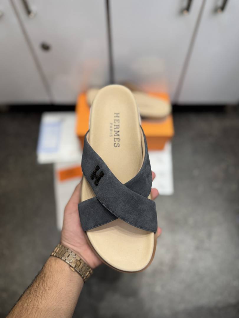 • HERME.S INFRA CROSS ITALIAN SLIDE GREY SUEDE 023