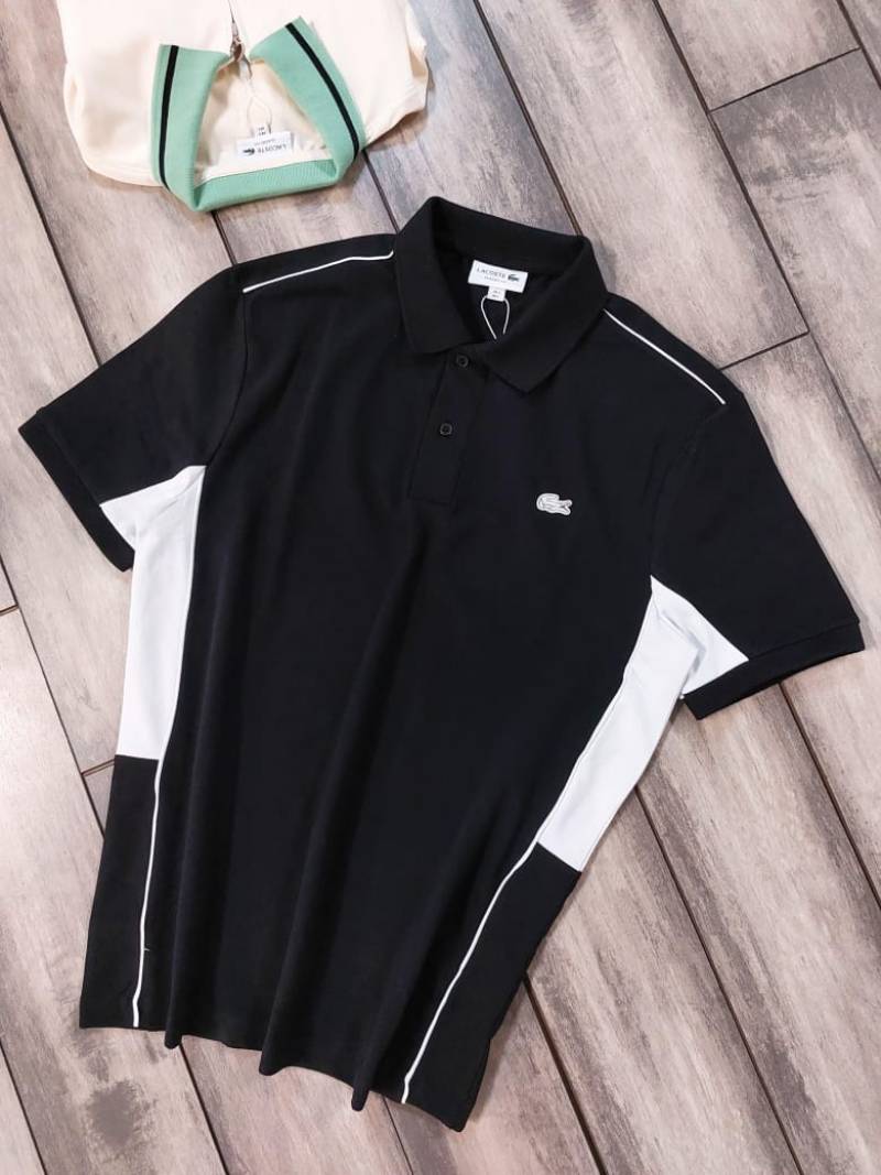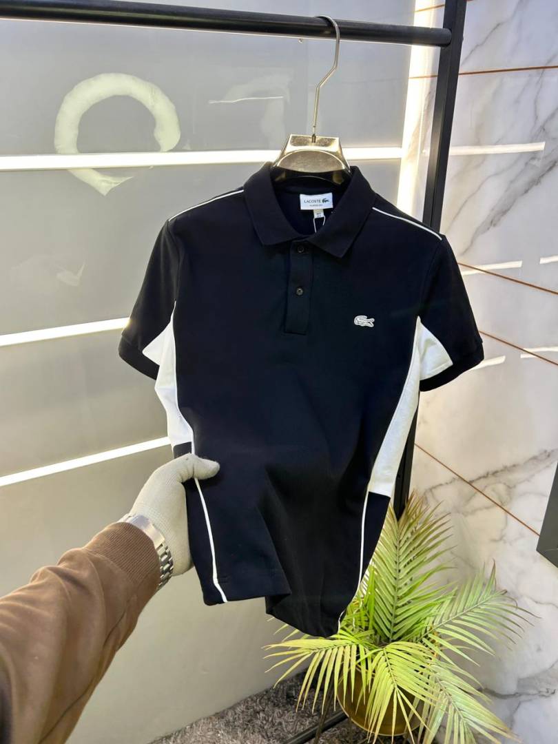 Lacost e Black Polo Premium Collar Neck T-shirt F3424-B1