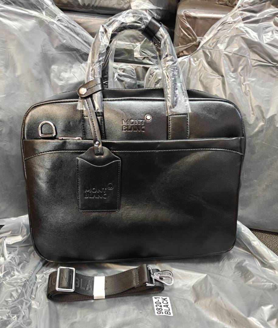 Mont Blanc Classic Utility Leather Laptop Bag With Tag Black (9820-1)