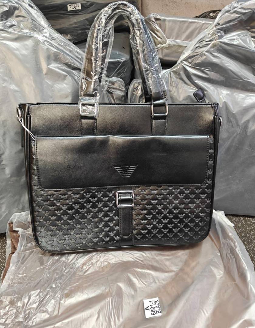 • Mont Blanc Executive Pattern Panel Buckle Laptop Bag (A-6801-1) (Black)