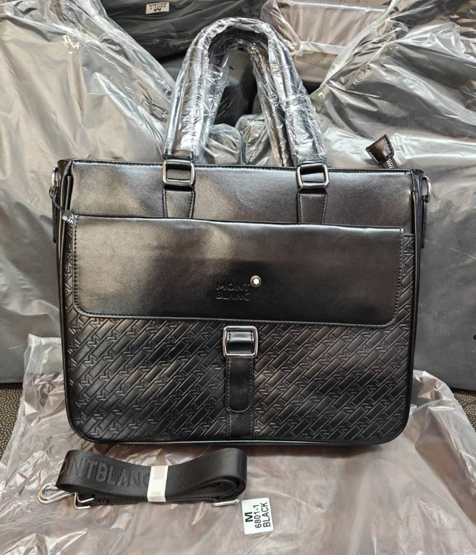 Mont Blanc Structured Leather Laptop Bag With Pocket Strap Closer (V-8059-1)