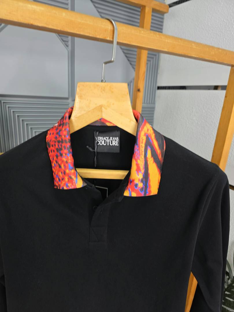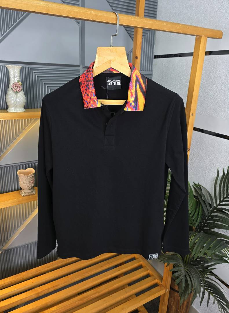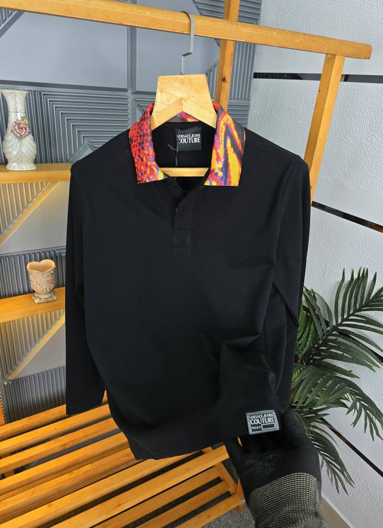 Versace Black Polo Neck Full Sleeves Premium Collar T-shirt F3095-B3