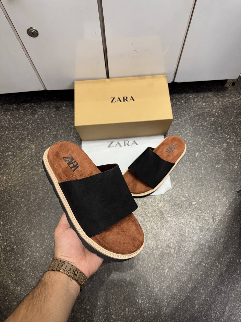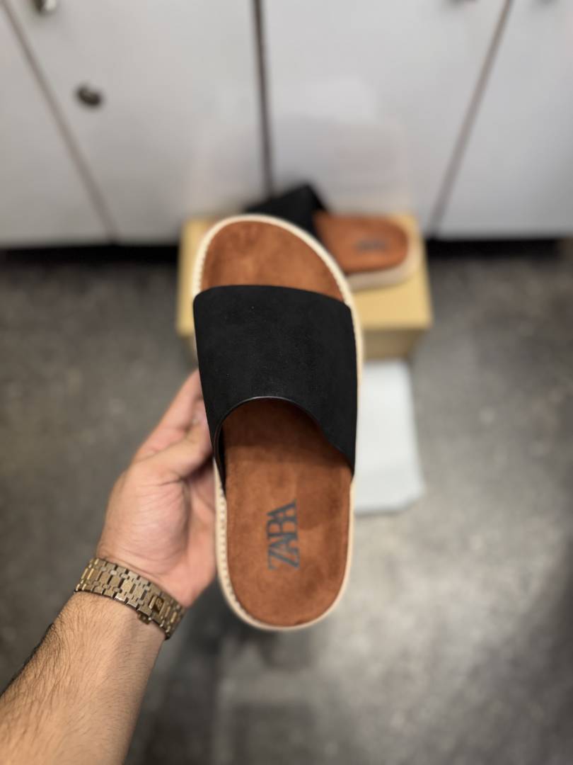 • ZAR.A PREMIUM SUEDE SLIDE BLACK TAN 026